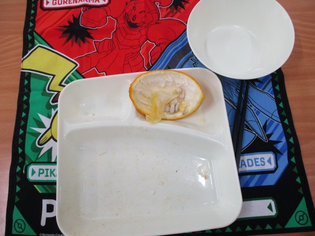 1年生はあまなつかんの皮むきも頑張りきれいに食べていました。