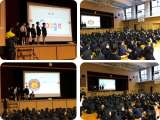 東中学校の生徒会とESS部の皆さんが、6年生に中学校のことを紹介するために来校...