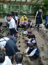 校舎の屋上にあるルーフテラスで、今年も栽培活動が始まりました。オオバやエダマメ...