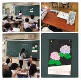 3年生の図画工作で、あじさいを描く学習が始まりました。白色の絵の具は使わず、赤...