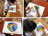 1年生が英語の色について学習しました。袋の中に入っている数字カードを引き、それ...