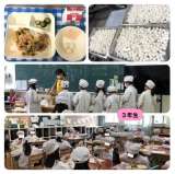 今日の給食に登場した豚丼と白玉だんごのきな粉がけはとても人気がありました。丼は...
