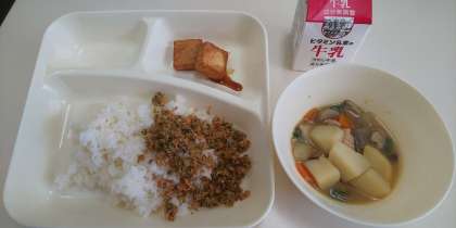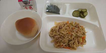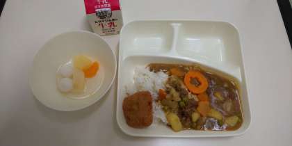 4月9日から給食が始まりました。1年生にとっては、小学校で食べる初めての給食です。どのクラスでも「給食おいしい‼」「少し苦手だけど、頑張って食べる」と嬉しそうに話してくれました。カレーライスや焼きそばはもちろんのこと、煮物やきゅうりのしょうがづけもしっかり食べることができました。