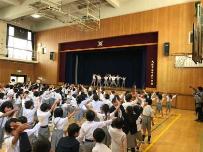 次に、学校内の特別教室を案内してもらいました。自分たちの教室以外にどんな教室があって、何をするところなのかを教えてもらって1年生は大喜びでした。