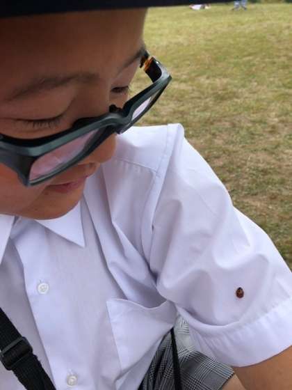 肩にてんとうむしが!