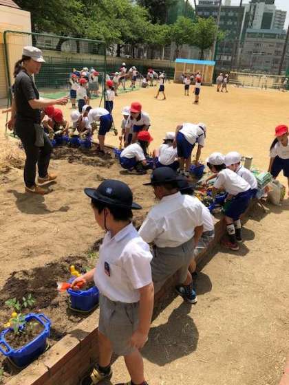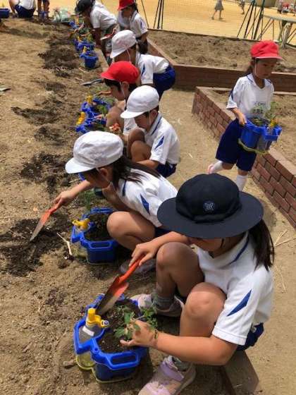 初夏の気配が強まる中,2年生の子どもたちはミニトマトを,