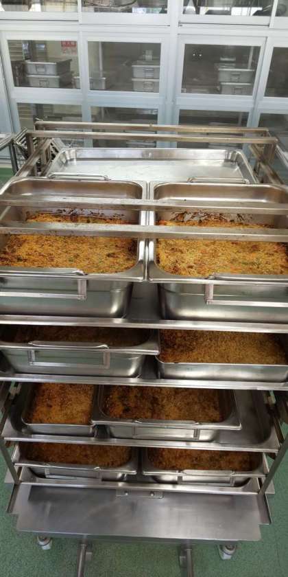 焼き物機です。今日はドリアを焼きました。魚を焼いたり、お肉を焼いたり、おこわを蒸し焼きにしたり、ういろうを蒸したり大活躍しています。