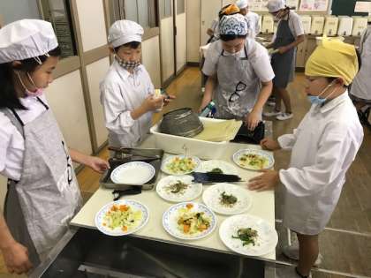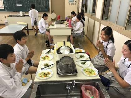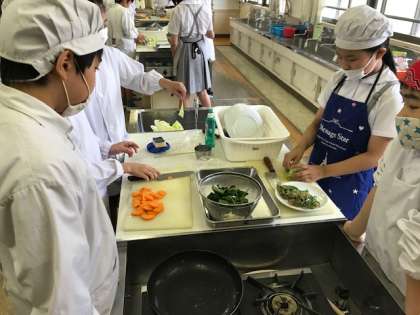 初めて油を使って、炒める学習でしたが、班で協力して、上手にできていました。