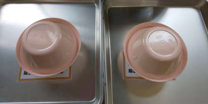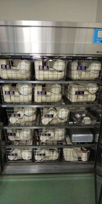 食器は、食器消毒保管庫で熱風乾燥し、給食時間まで保管しています。毎日きれいな食器です。