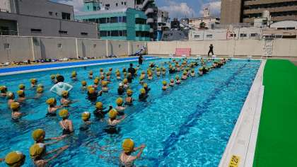 13日から水泳学習が始まりました。待ちに待った1年ぶりのプール。3年生から、水中の体操「アヒルのたいそう」を卒業し、「中央アクア」が始まりました。新しい振付に一生懸命!これから本格的に水泳の学習が始まっていきます。安全に気をつけながら、しっかりと泳力をつけていきたいです。
