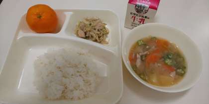 今日の給食は「ピリ辛いため、オクラとん汁、冷凍みかん、ごはん、牛乳」でした。1学期最後の給食をどのクラスも楽しく食べていました。冷凍みかんを初めて食べた1年生は「冷たくておいしい!」と大騒ぎでした。