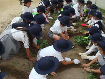 午前中に、1クラスずつ順番に学習園へ出て、おいもほりをします。