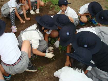 生活科の学習の一環で、6月に植えたサツマイモ。