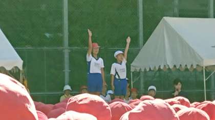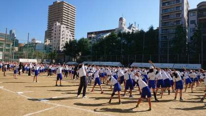昨日と今日の1時間目に、全校児童で運動会の開閉会式と応援の練習を行いました。