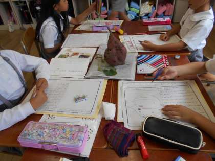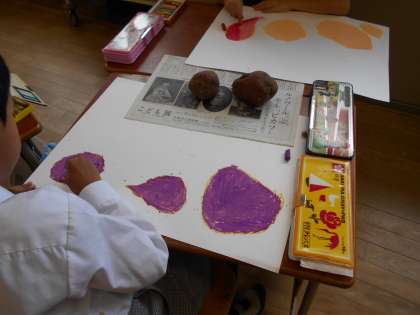 みんなでほったおいもをかんさつしたり、絵にかいたりしました。