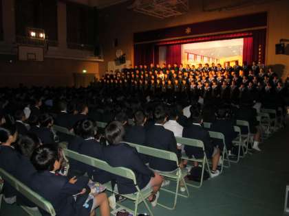 小中連携の一環として、上町中学校の文化活動発表会を見学させてもらいました。児童は、中学3年生による劇を鑑賞し、その完成度はもとより、そこに込められた先輩たちの熱い思いも感じることができました。