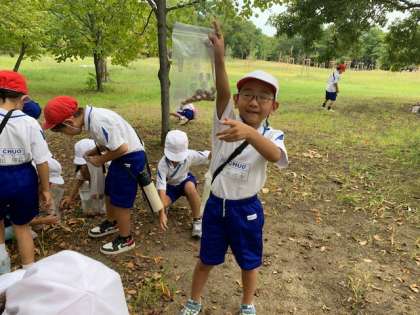 大繩をしたり、ドッジボールをしたり、虫を探したりと