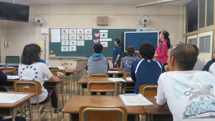 外国語活動研修会を行いました。夏休みに行われた市の研修会に参加した教員を中心にモデル授業があり、参加者も授業を行いました。中学校との連携を図り、今後も定期的に実践に活かせる研修を重ねていく予定です。