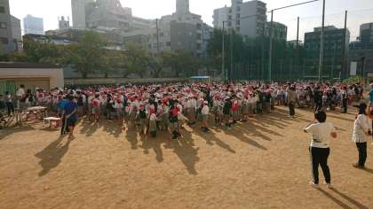 今日の児童集会は、運動場で「ペアでジャンボじゃんけん」をしました。