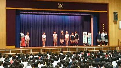 健康委員会の発表は、手洗い・うがいについてのクイズを織り交ぜた劇で、みんな楽しみながらクイズを解いていました。