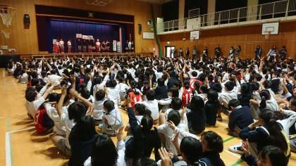 今日の児童集会は、健康委員会の発表と、美化委員会からのお知らせがありました。