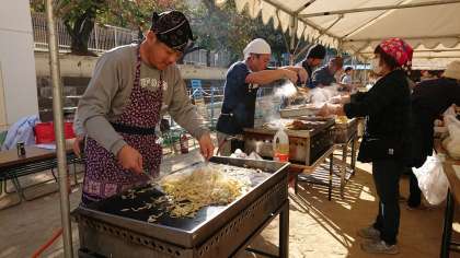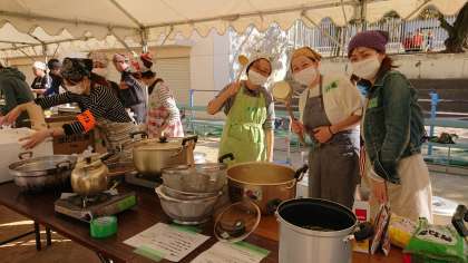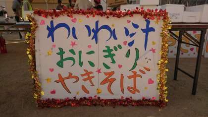 毎年大人気のわいわい汁、焼きそば、おにぎりがあります。