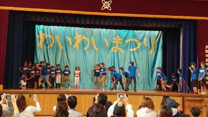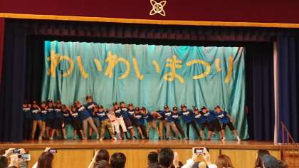 試合の様子を再現したり、みんなで歌ったり、ハカを披露したり…。