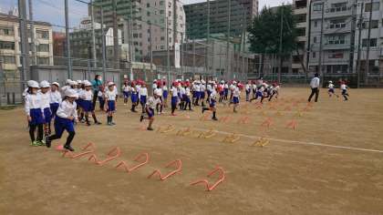 大またで歩いたり、スキップしたり様々な練習方法を通して、速く走るためには、腕をしっかりふること、かかとをつけずに素早く地面をけることだと学びました。また、ペアでゲームを取り組み、速く走るようにするためには、頭を使って考えながらしないといけないと気づきました。