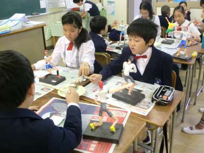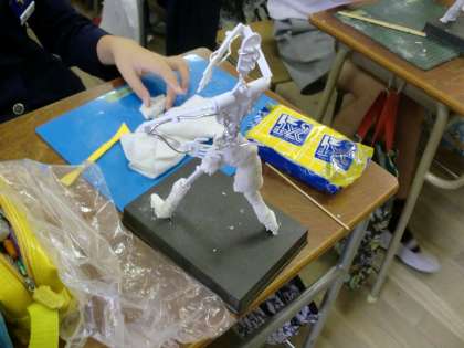 作品展に向けて、紙粘土と芯材を使って立体作品を制作しています。どんな仕上がりになるか作品展でご覧になってください。