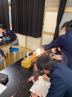 白熱球、蛍光灯、LEDの特性の違いや節電について学びました。