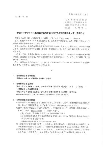 新型コロナウイルス感染症の拡大予防に向けた学校休業について