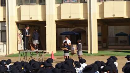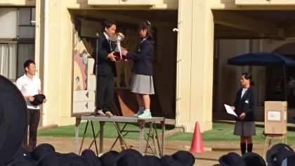 今週の朝礼では、大阪府科学賞の表彰と塚本杯優勝(キックベースボール)表彰が行われました。