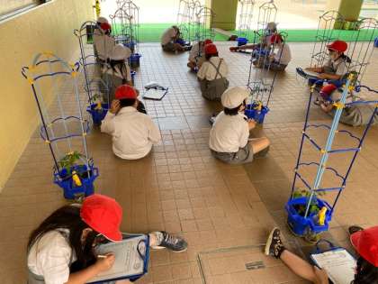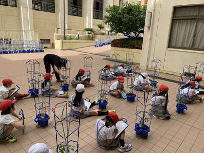 今日は、ミニトマトの観察をしました。蕾が出ていて子もいました。これからもぐんぐんと育つといいですね。また、今年度初めての給食でした。久しぶりの給食で友達と食べることができ、嬉しそうにしていました。