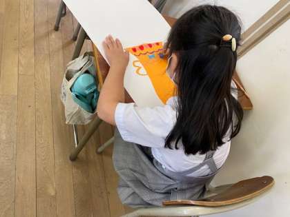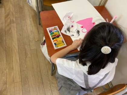 思い思いに花瓶の形を切って、パスでもようをかきました。