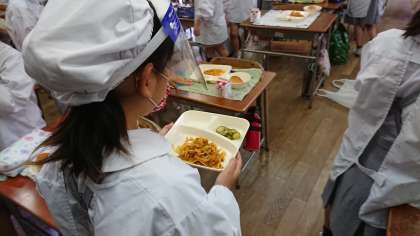 給食もいつものメニューになり、配膳も自分たちでしました。