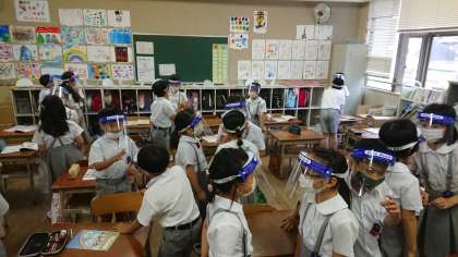 友だちとドキドキしながら、英語であいさつをしあいました。