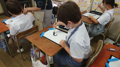 書道道具の名前や使い方を学び、普段は墨汁を使うところ、今回は墨を自分ですってみることにしました。