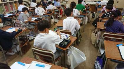カタツムリのうずまきは、しっかりとひじを立てないとかきづらいので、ピシっといい姿勢で、真剣にかいていました。