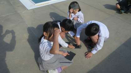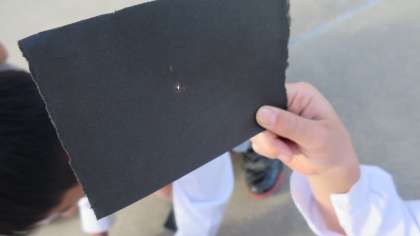 あっという間に焼けこげた画用紙に歓声があがりました。太陽の光の力を実感しました。
