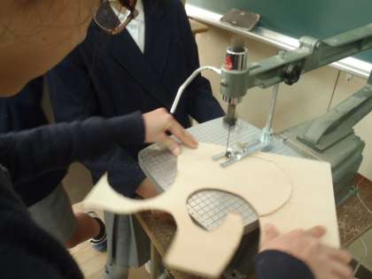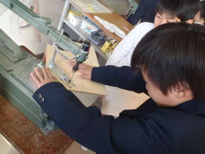 図工で、電動のこぎりにチャレンジしています。