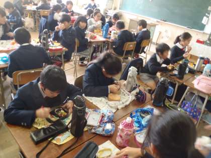 見学時間が決まっているので、学校で少し早目のお弁当を食べました。朝からみんな、お弁当が楽しみでした。