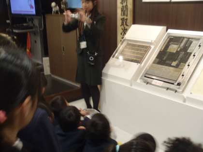 印刷工場では、新聞ができるまでのDVDを見たり、実際に新聞が作られる様子を見たりしました。新聞が、あっという間に印刷、梱包されていくのを見て、驚きの連続でした。