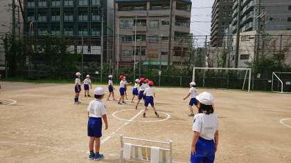 3年生の体育は、初めてのチーム競技「ポートボール」に取り組んでいます。