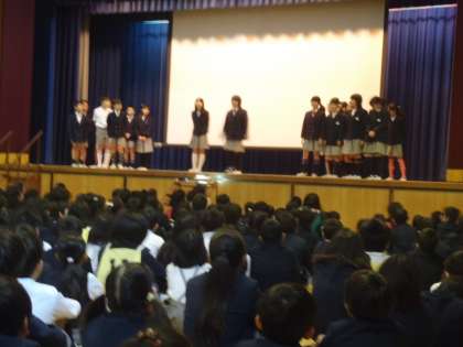 12日(金)の児童集会で、「うさぎ小屋のそうじの仕方」をVTRで、「うさぎの意外な特徴」をクイズ形式で紹介しました。また、それぞれの学年が育てている植物を、♪「おもちゃのチャチャチャ」に合わせ、替え歌で紹介しました。みんなの手拍子と歌声が講堂に広がりました。高学年の中には、
