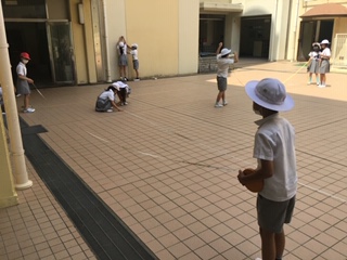 教室のたてよこ、10mはどれくらいだろうか、柱やジャングルジムをはかってみよう、など、いろんなものを楽しくはかりました。