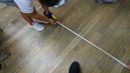 ものさしからさらに長い長さをはかるため、「まきじゃく」を使ってみました。