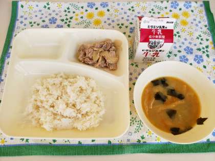 1品少ないですが、メインが豚肉だったのでボリュームのある給食でした。