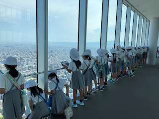 今日は3年生初めての社会見学で、あべのハルカスに行きました。
