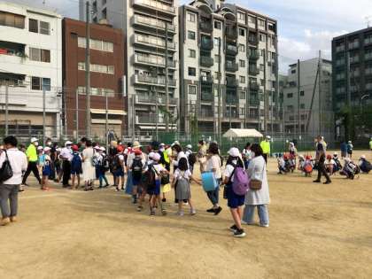 台風や地震などで緊急に下校しなければならない状況になったときに、保護者の方への引き渡しをし、その後に集団下校をする訓練を運動会終了後に行っています。たくさんの保護者の方々にご参加いただき、スムーズに訓練をすることができました。ご協力ありがとうございました。