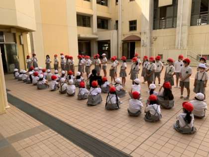 2年生が見本で回していると、1年生は「すごい」「きれい」「わたしも上手に回したい」とうれしそうに見ていました。